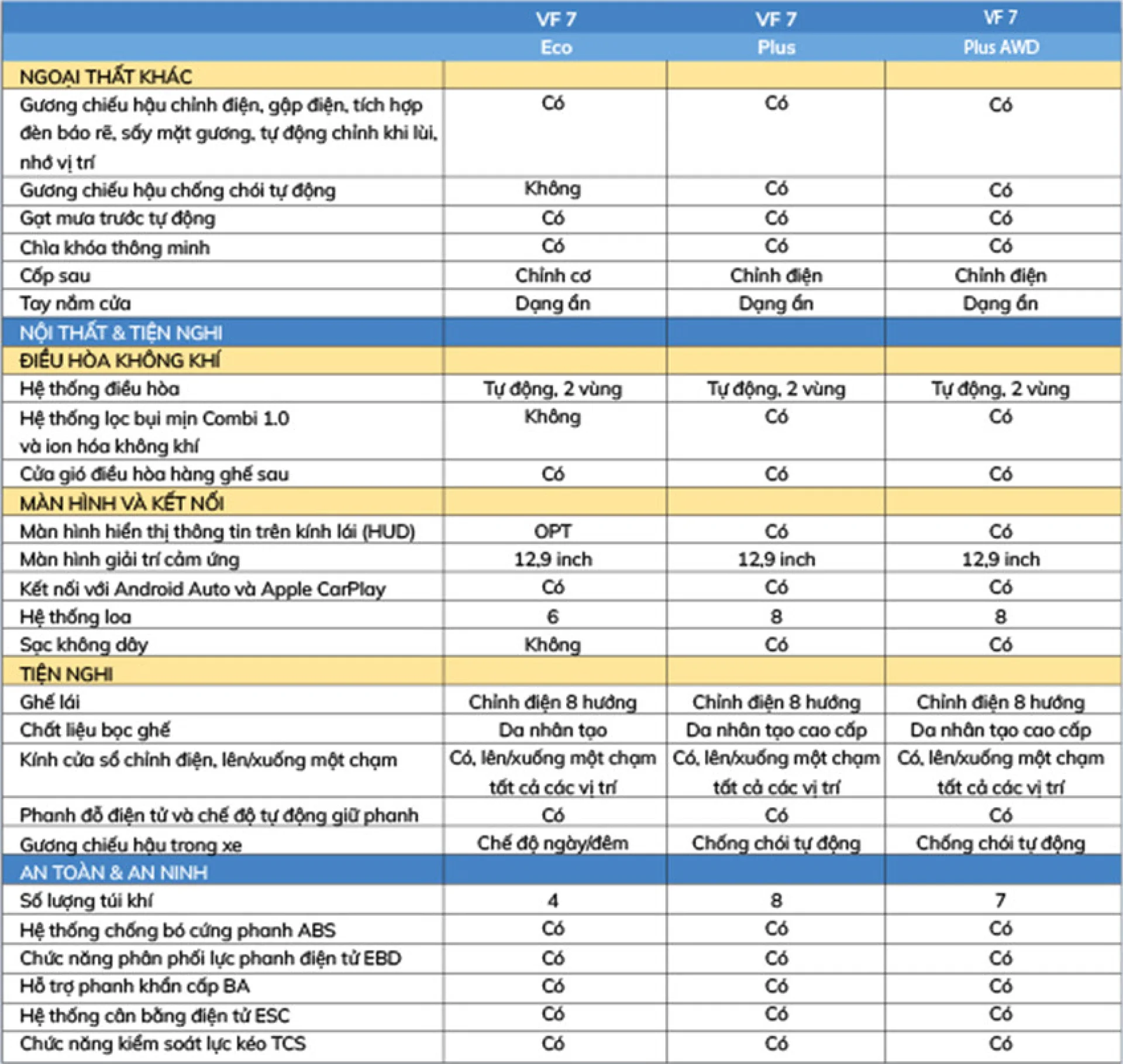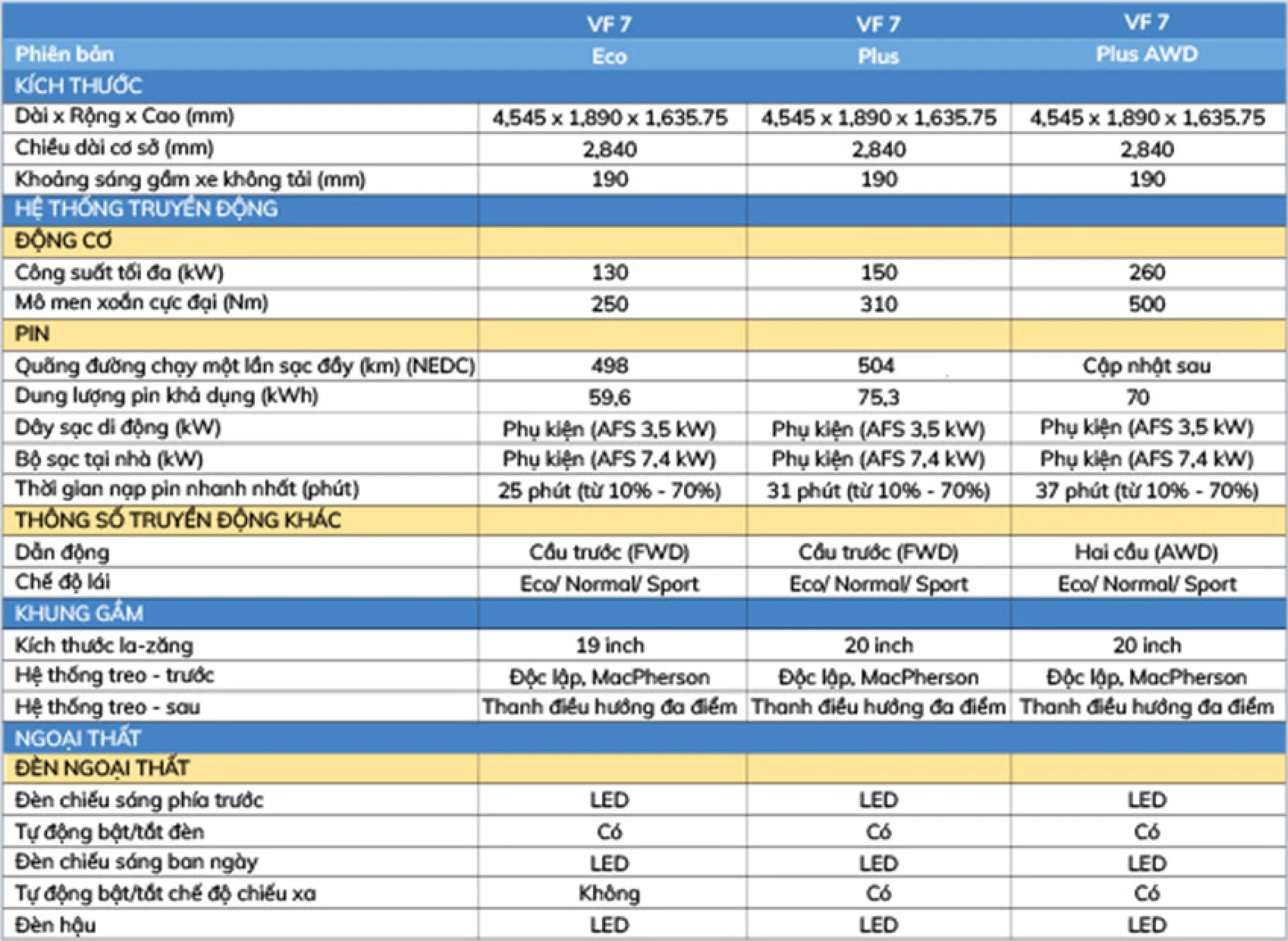 | VF 7 Eco | VF 7 Plus | VF 7 Plus AWD | |